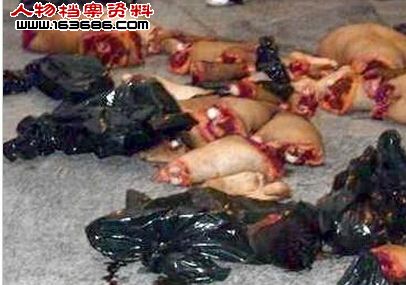 在被抓獲後,丁啟泰稱他自己都覺得這個碎屍過程太變態,肢解的時候不忍心看死者的臉,就把死者整張臉撕了下來。而不能在廁所沖走的骨頭(比如手臂,腳掌以及脊骨等),則被丁啟泰削骨去肉,讓它“看上去不像人骨,好似豬腳”,然後用手推車運到附近的石硤尾街市,當時已是晚上時分,街市空無一人。嫌兇將人骨放在肉檔下一個放置豬骨的竹籮中,與其他豬骨混在一起,試圖魚目混珠,所以也就有了部分人骨被混入街市的肉檔出售的說法。