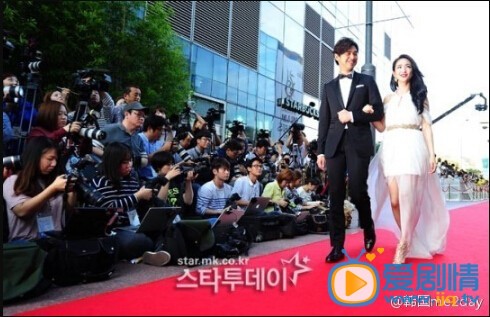 陳柏霖和林依晨手挽手參加首爾電視劇大獎頒獎儀式