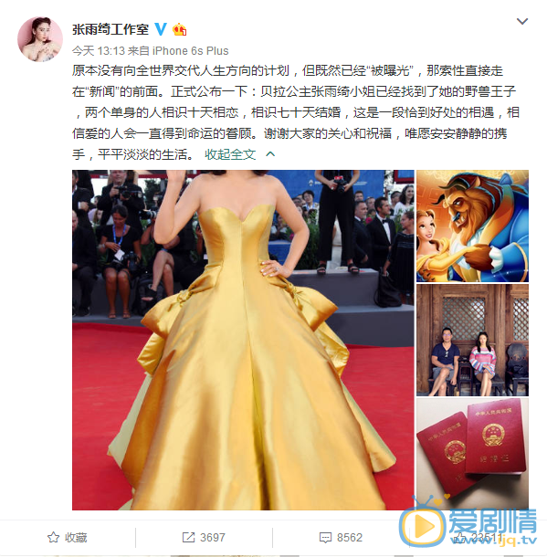 張雨綺結婚,相識70天領證,男方是壕中壕張雨綺正式公布結婚!10月26日中午,張雨綺工作室發微博公布張雨綺婚訊,微博稱:“貝拉公主張雨綺小姐已經找到了她的野獸王子 ,兩個單身的人相識十天相戀,相識七十天結婚,這是一段恰到好處的相遇,相信愛的人會一直得到命運的眷顧“。恭喜祝福!更多精彩內容請點擊:張雨綺承認再婚,其老公系二婚,曾與上海女主播結婚生子。 張雨綺承認再婚,其老公資料背景被曝光,實力壕中壕。張雨綺最新訊息張雨綺發文澄清老公身份,醫生出身,曾育有一女張雨綺承認再婚,張雨綺老公系二婚,曾與上海女主播結婚生子張雨綺承認再婚,張雨綺新任老公是誰?張雨綺新任老公袁巴元資料背景被曝光張雨綺相識70天迅速閃婚,老公坐擁多家公司,背景強大實力雄厚張雨綺結婚,相識70天領證,男方是壕中壕張雨綺新戀情曝光,同逛超市一起看房,似要購豪宅