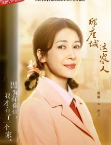 在電視劇《那座城這家人》中童蕾飾演“楊艾”一角,在大地震中失去了父母和大姐一家,即將結婚的戀人海子哥也死了,後來又認識了同樣失去摯愛的王大鳴,兩人相互扶持著組成了半路夫妻。王大鳴一家人誤以為林智燕沒救活,死在了地震中,兩年後王大鳴在父母和親人的勸慰之下接受了楊艾,兩人結婚,還順利有了孩子,然而王大鳴卻突然從酒館老闆老沙嘴裡得知林智燕有可能還活著,老丈人林兆瑞急匆匆的去了天津,他也急忙追去,想要弄明白到底怎么回事。