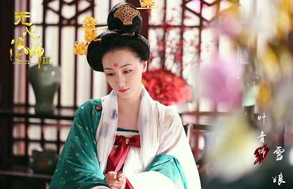 根據公布的海報來看,這次新加入了不少角色,曾和唐人有過多次合作的葉青也有參演,高聳的髮髻上插著金色的菊花簪,妝容也很古典額頭上還畫著花鈿,身上穿著白色的齊胸襦裙,胸口上則是繫著紅色蝴蝶結做裝飾,綠色印花的披帛增加了衣服的鮮亮感,整體造型還是非常有盛唐風韻的。