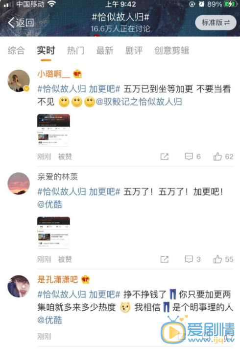《恰似故人歸》的播出方式是會員周一到周三每天兩集,接下來的四天就需要坐等更新。相當於是一個禮拜看三天,休四天。比起其它劇情的播出方式上,的確是有點“特別”。打開首頁,大家討論里最多的,就是催更的問題。