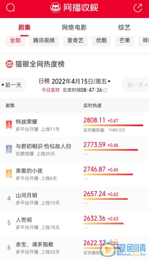 不過隨著《馭鮫記之恰似故人歸》即將進入尾聲,在各大平台的數據都有所下滑,就如在貓上全網熱度榜,《恰似故人歸》的實時熱度就已經下降了一名,被上星劇《特戰榮耀》超越了。儘管這樣也完全不影響《恰似故人歸》的實力,可能眾所周知《恰似故人歸》開播以來不像很多的劇集天天買熱搜上榜的,就如之前堪稱收視率第一的劇就是靠買熱度的,這裡就不提那個劇了。